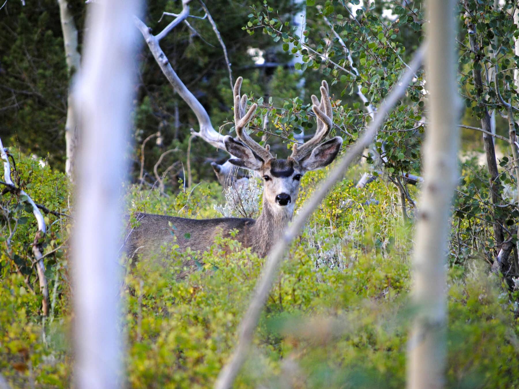 Aspen and its diverse understory of shrubs and forbs provide a habitat for numerous wildlife species. Next to riparian areas, the Aspen Zone is unsurpassed in diversity and biomass. Deer and elk give birth to their fawns and calves in the aspen groves. Red-tail hawks and goshawks nest in aspen trees feeding their chicks small mammals and songbirds which also thrive in this zone.