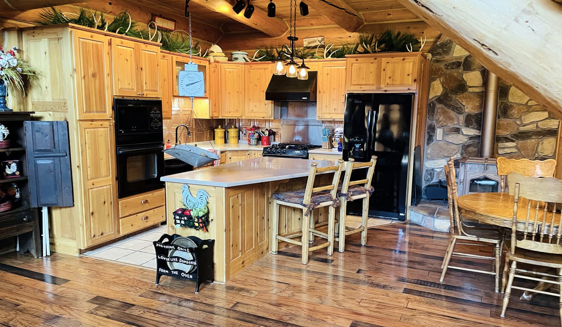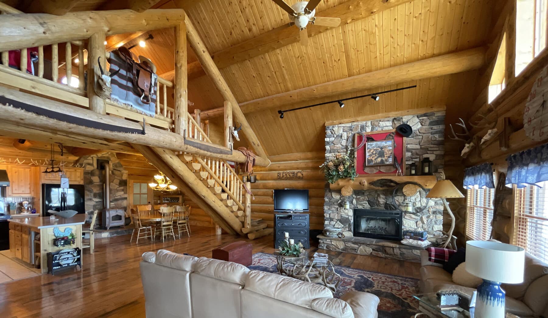 The rustic look and feel of this property are the real thing.  Not only does it have the genuine log architecture that makes you feel like you are in nature, the abundant wild-game watching will also leave you no doubt.  These private mountain getaways are few and far between.  This property will get you away from people and neighbors, but still close enough for a short drive into town for amenities. Guests will appreciate the seclusion the property offers without a daunting drive to get there.  Since the house is not surrounded by trees, it allows for much better views and significantly reduces the fire danger of living in the middle of a forest.