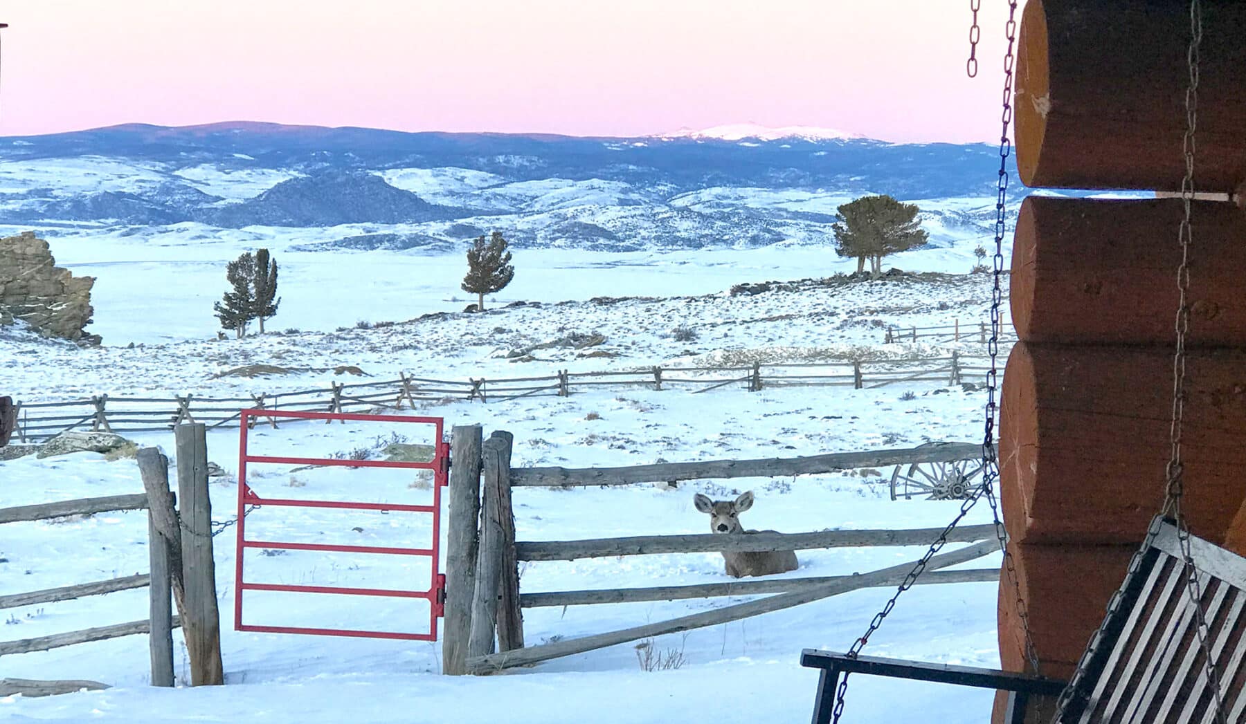 The property attracts many species of wildlife because of its location.  Deer, elk, and antelope can be routinely seen from the house.  And a good spotting scope or pair of binoculars broadens the view to enjoy wildlife across the rolling hills in the distance. The owners have also seen black bear and even tracks that mountain lions have passed through the property on occasion.  The Encampment River bighorn sheep herd is very close by, as well as some great moose habitat along the river.