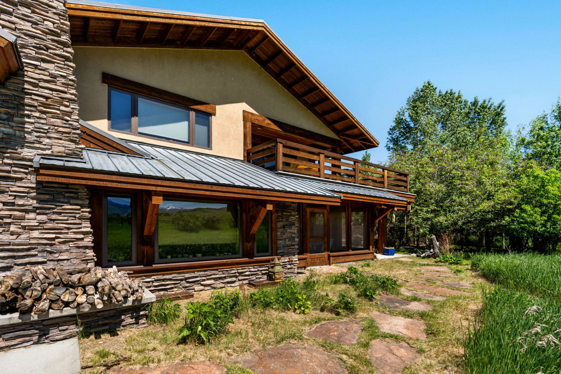 Radiant in-floor heat keeps the house temperature consistent throughout. The exterior beams have been freshly stained.