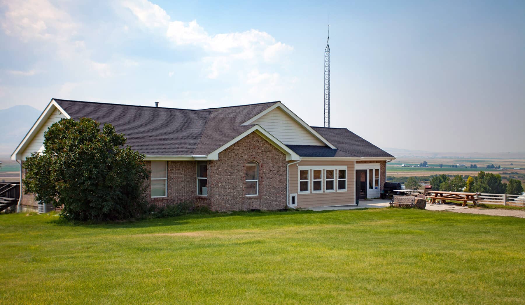 The ‘Brick House’, which the current owners utilize as their primary residence, is a very comfortable family home with a beautifully remodeled kitchen that has commanding mountain and river-corridor views. The 2,984± square foot four-bedroom, three-bathroom home is heated with forced-air heat and has air conditioning. The home has a separate well and septic system. There is a nicely fenced and landscaped yard with mature trees, an underground sprinkler system, and two concrete RV pads with water and power.